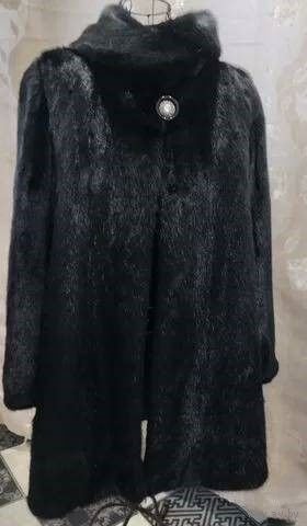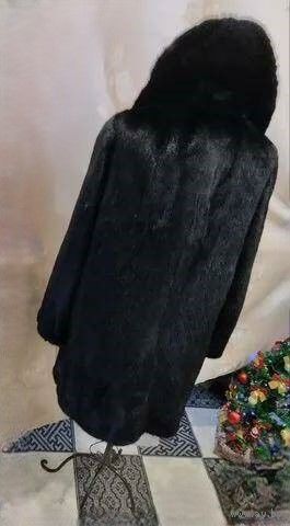 Норковая черного цвета шуба. Бренд. "GROYALEON". Высокого качества и мех норки, и пошив. Без нюансов. Все изделие в отличном состоянии. Длина по спинке - 80 см. Высокий воротник. В подоле и в рукавах кулисы. Есть карманы. Традиционные застежки: пуговица и четыре шубные клипсы Расстояние от подмышки до подмышки 56 см, полный обхват в районе груди - 112 см, т.е. на лично Ваш ОГ не более 104 см. Полный обхват в районе бедер - 115 см. Плечи - 42 см. Рукав от плеча - 59 см. Доставка за счет продавца.