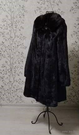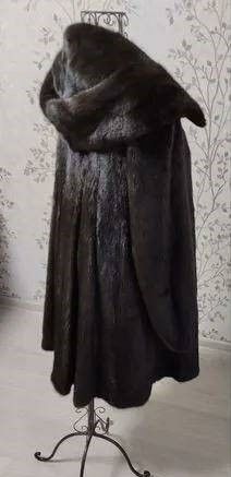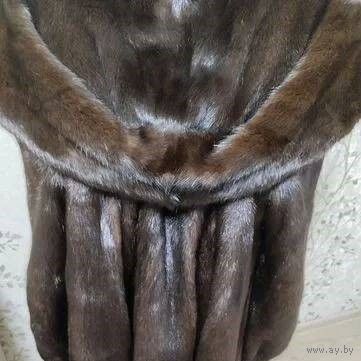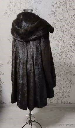 НОРКОВАЯ ШУБА С КАПЮШОНОМ. KOPENGAHEN FUR. Норка натурального коричневого окраса. Мех без залысин, без потёртостей, без обломов ости. Не новая, однако в достойном состоянии, не требует дополнительных вложений. Длина - 90 см. ОГ у шубы - 108 см. ОБ - 134 см. За счёт размаха подола в 180 см, у шубки мех свободно ниспадает и струится со стороны спинки. Плечи - 42 см. Рукав от плеча - 66 см, длина рукава из под мышки - 46 см. Кулисы в талии и в рукавах. Замеры сняты с шубки в застегнутом состоянии.