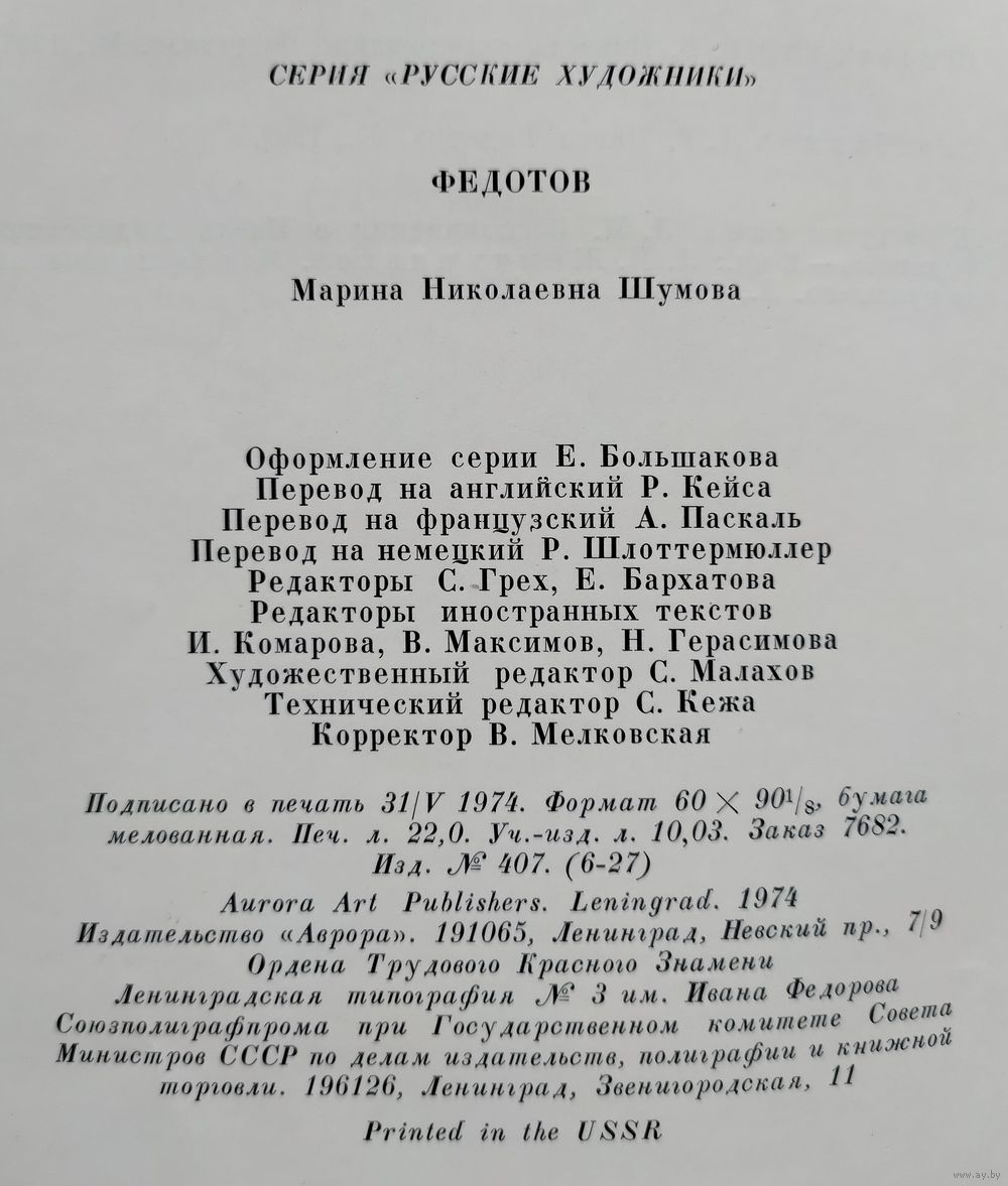 Шумова М. Федотов. Серия: Русские художники. Л.: Аврора, 1974г., 176с. Твёрдый переплёт, без суперобложки, энциклопедический формат.