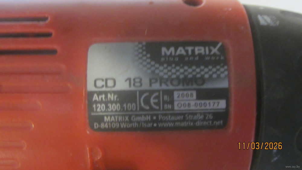 2) шуруповерт - 350/1050 обор/мин,18В.1,0 Ah,12Nm,патрон 0,8-10 мм.,2008 г.в.