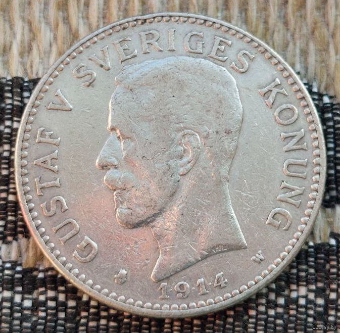 Швеция 2 кроны 1914 года, AU. Густав V. Герб. Серебро. Сторгуй за свою цену, предложи обмен! S