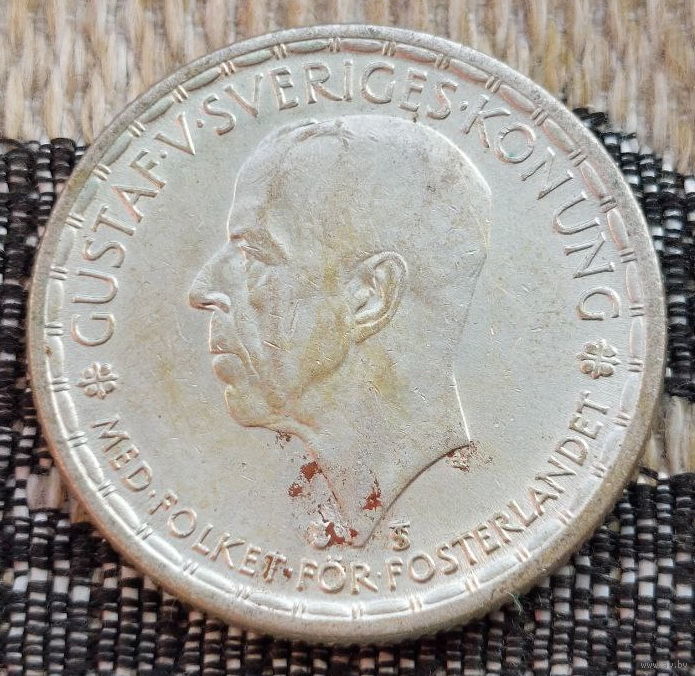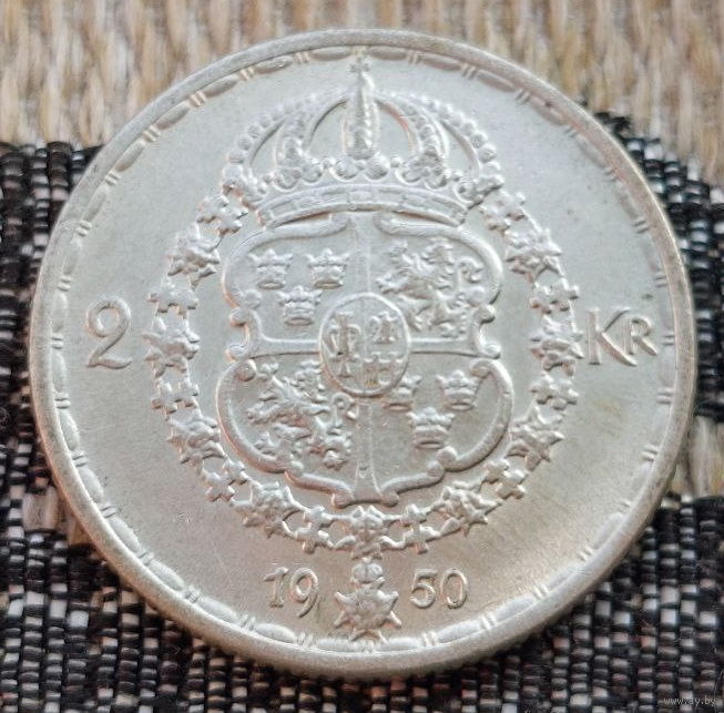 Швеция 2 кроны 1950 года, AU. Густав V. Герб. Серебро. Сторгуй за свою цену, предложи обмен! Y40