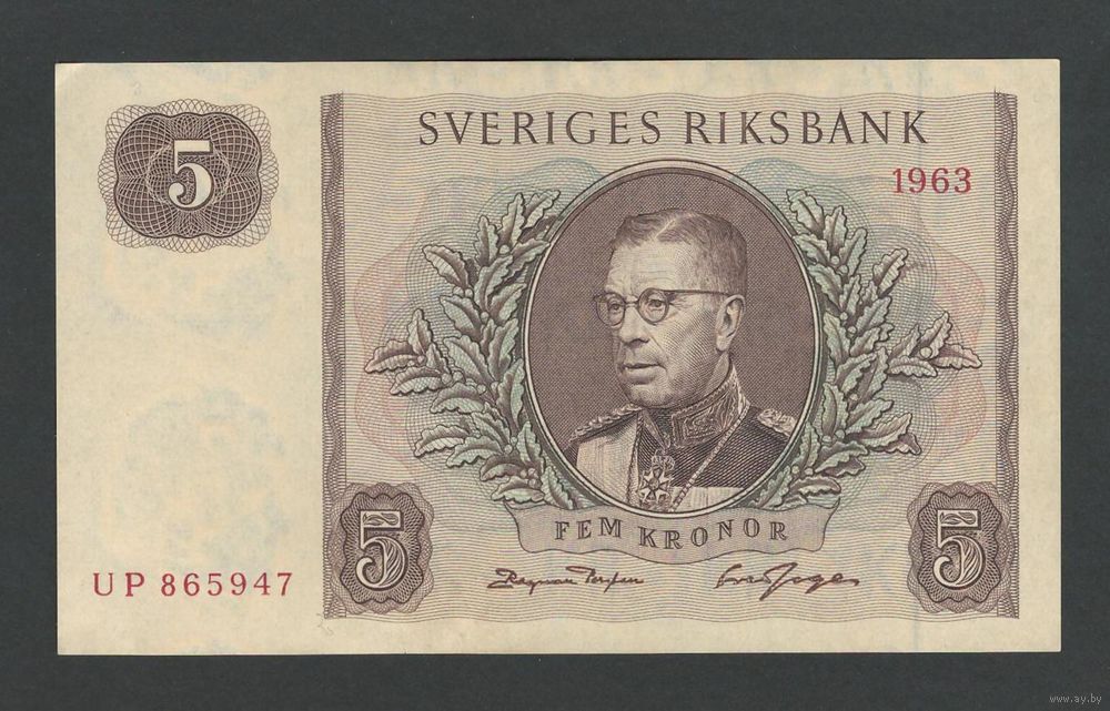 Швеция 5 крон 1963 года. Тип Р-50b. Состояние UNC-
