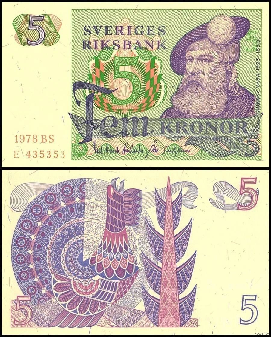 Швеция 5 крон образца 1978 года UNC p51d серия B
