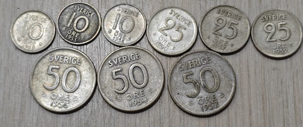 Шведские, разменные, серебряные монеты. 1950-ых. aUNC