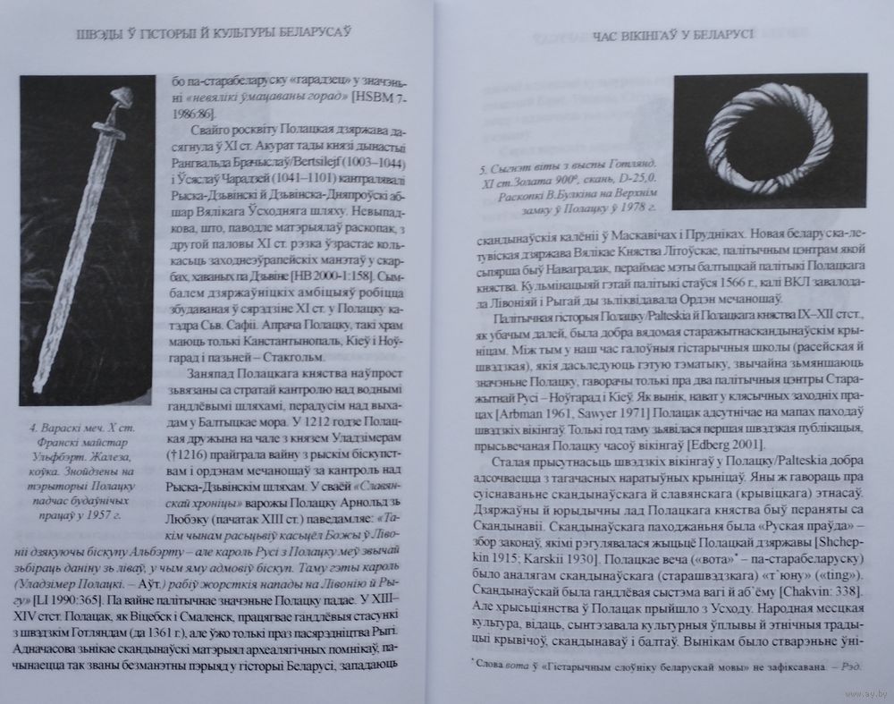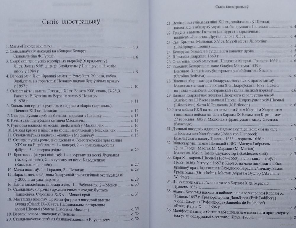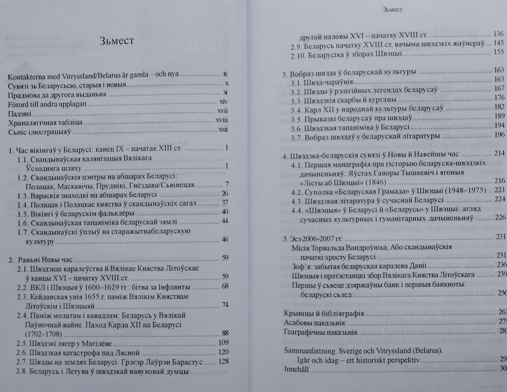 Кніга апісвае гісторыю беларуска-швэдзкіх дачыненьняў з Эпохі Вікінгаў, Сярэднявечча і па сёньняшні дзень. Шырока асьвятляюцца пытаньні, якія дагэтуль не атрымалі належнага разгляду - швэдзкага культурнага ўплыву на старажытнае Полацкае княства, характару гаспадарчай дзейнасьці вікінгаў на беларускіх земляху старажытнасьці, падзеяў Вялікай Паўночнай вайны на тэрыторыі нашай краіны. Прызначана для ўсіх, хто цікавіцца мінуўшчынай роднай зямлі.