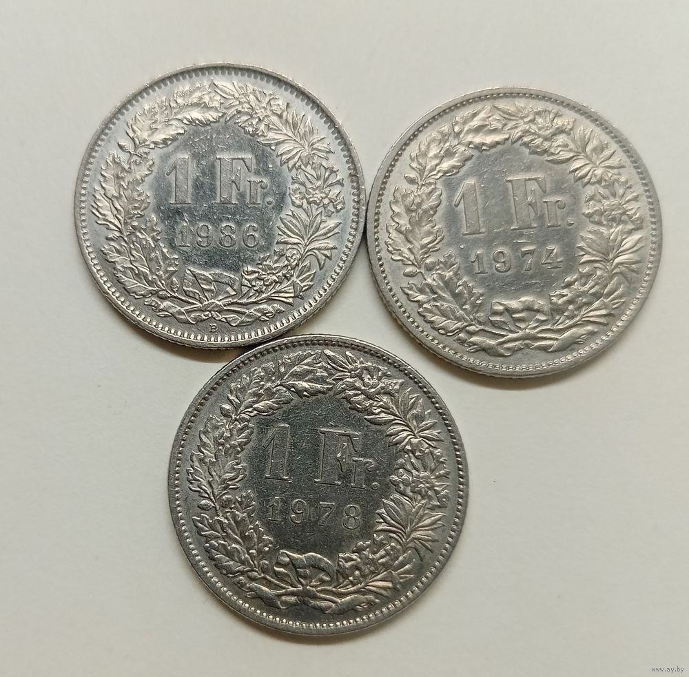 Швейцария 1 франк, 1974 год.1978 год.1986 год