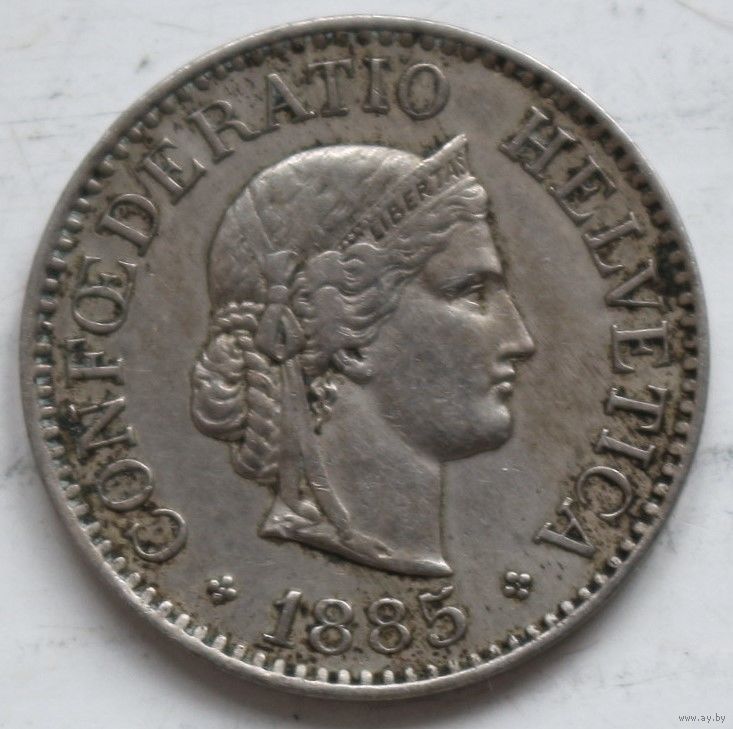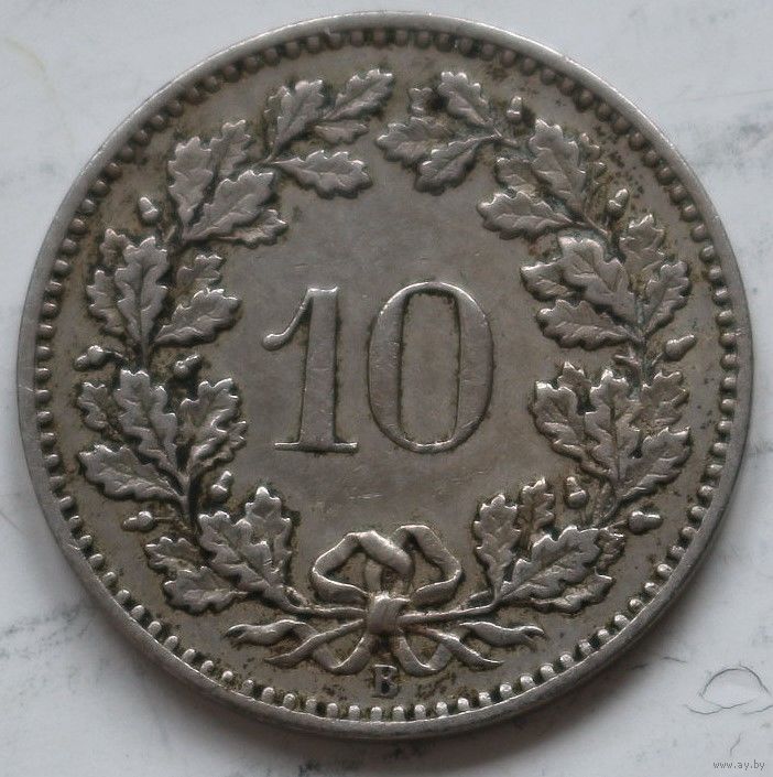 Швейцария 10 раппенов 1885 год