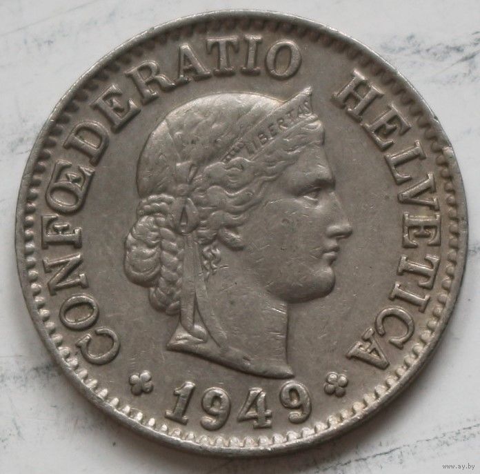 Швейцария 10 раппенов 1949 год