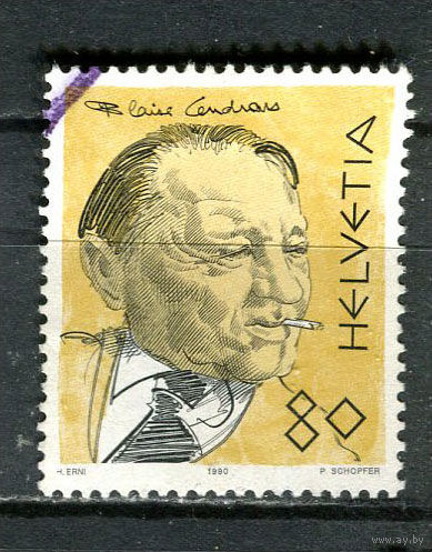 Швейцария - 1990 - Блез Сандрар 80С - [Mi.1425] - 1 марка. Гашеная. (Лот 34HW)-TG3P25