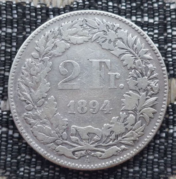 Швейцария 2 франка 1894 года, А. Париж. Серебро! Сторгуй за свою цену, предложи обмен!