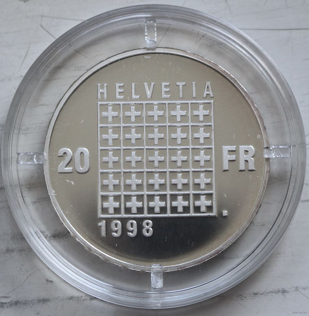 Страна - Швейцария. Период - Швейцарская конфедерация (1968 - 2026). Валюта - Швейцарский франк. Вид чекана - Коллекционные монеты. Номинал - 20 франков. Стоимость металла 20 XAGg x 0,835 = 41 EUR. Год 1998. Наименование - 150 лет Швейцарской конституции. Гурт Надпись. Описание гурта 'DOMINUS PROVIDEBIT ☆☆☆☆☆☆☆☆☆☆☆☆☆'. Форма Круг. Отношение авс/рев Медальное (0°). Материал Серебро 0.835. Вес (g)20. Диаметр (mm)32,8 Толщина (mm)2,8