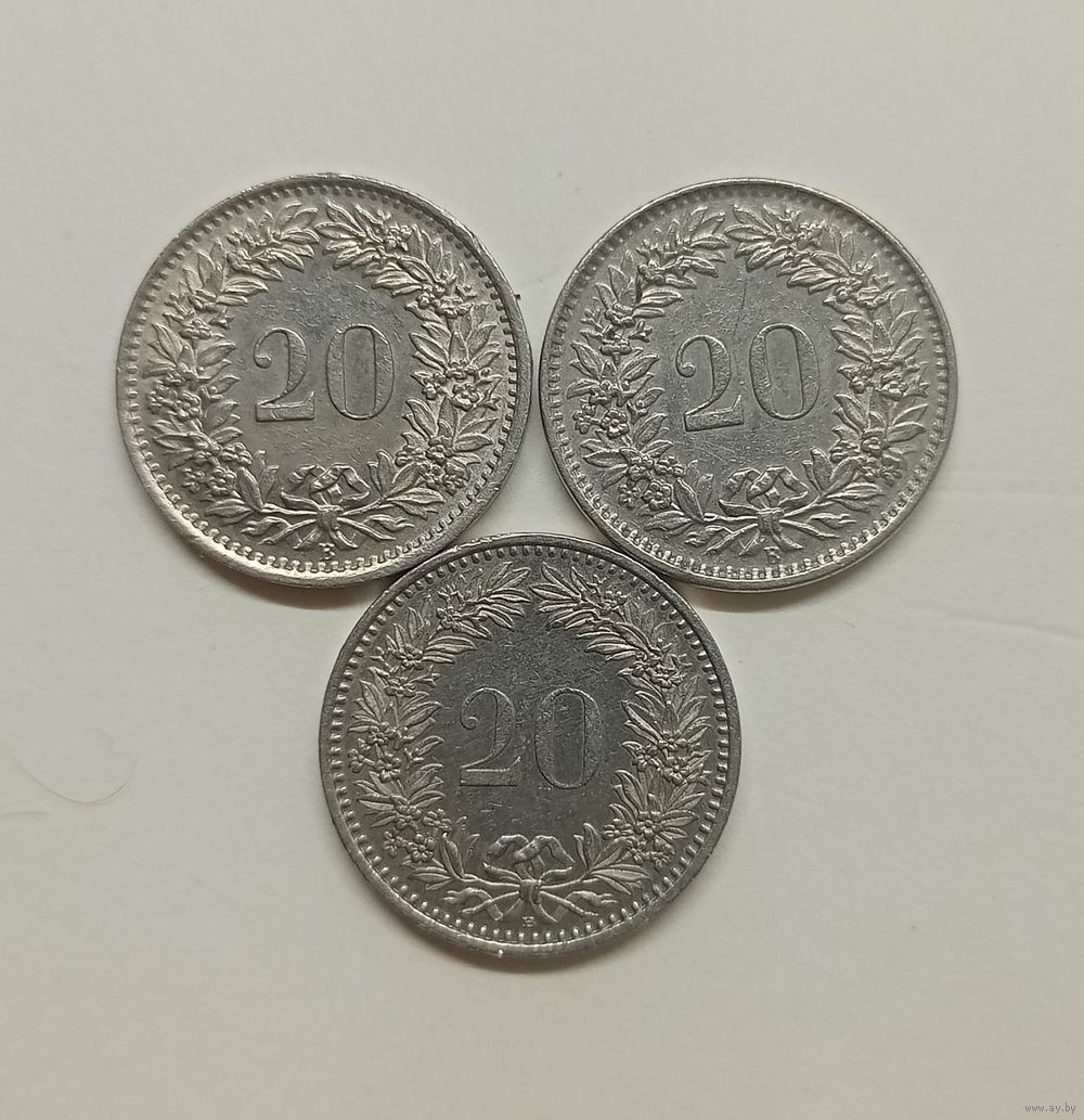 Швейцария 20 раппенов, 1965 год .1969 год.1986 год