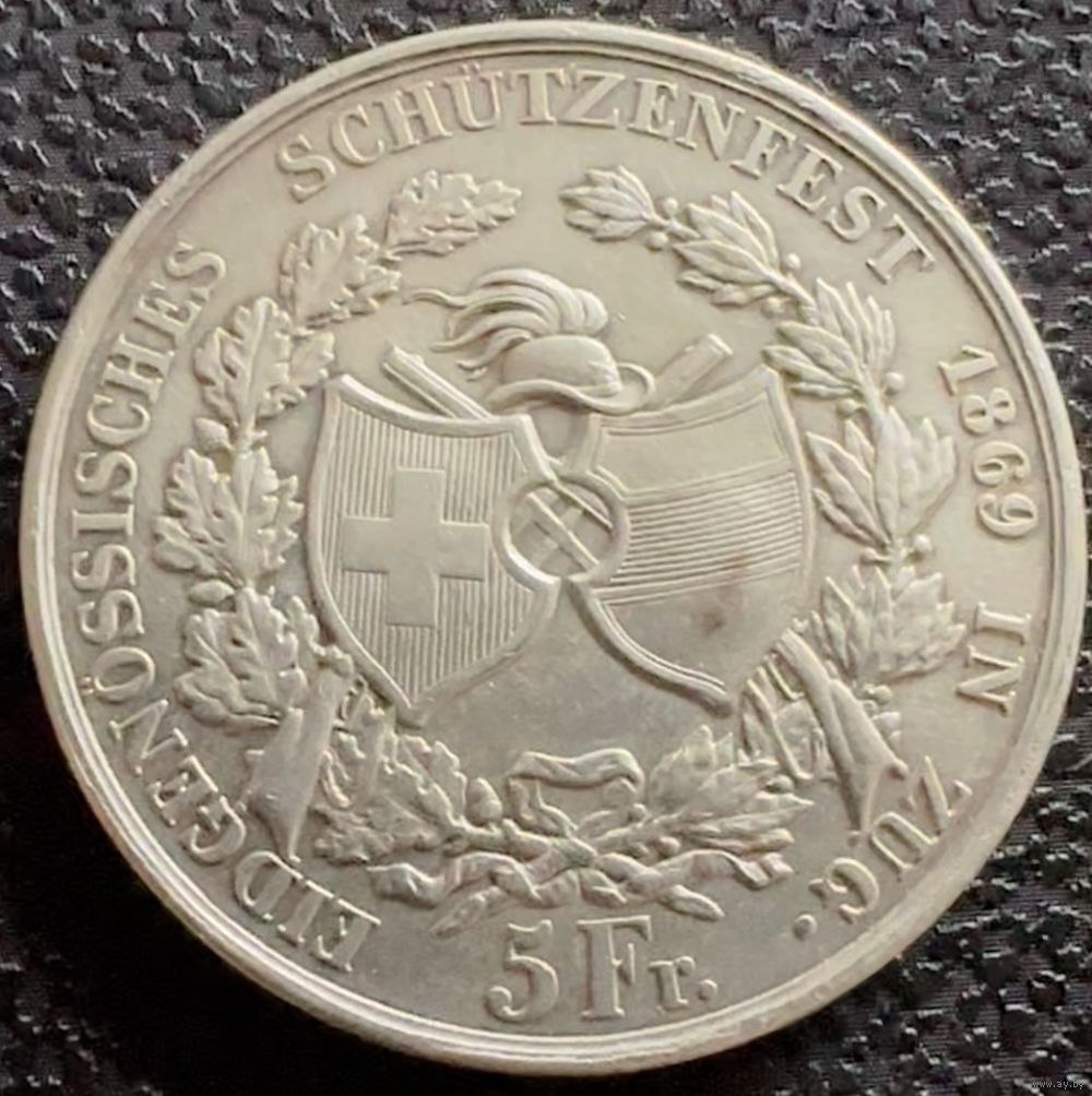 Швейцария 5 франков 1869г. Стрелковый фестиваль. Редкая!