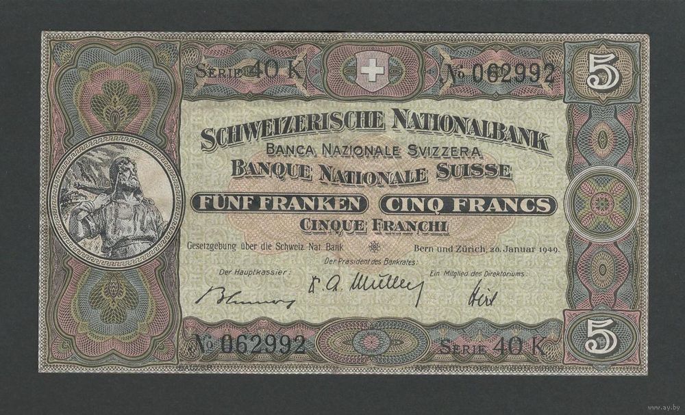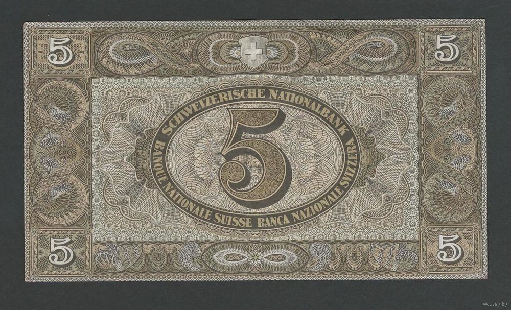 Швейцария 5 франков 1949 года. Тип Р-11n. Состояние XF+