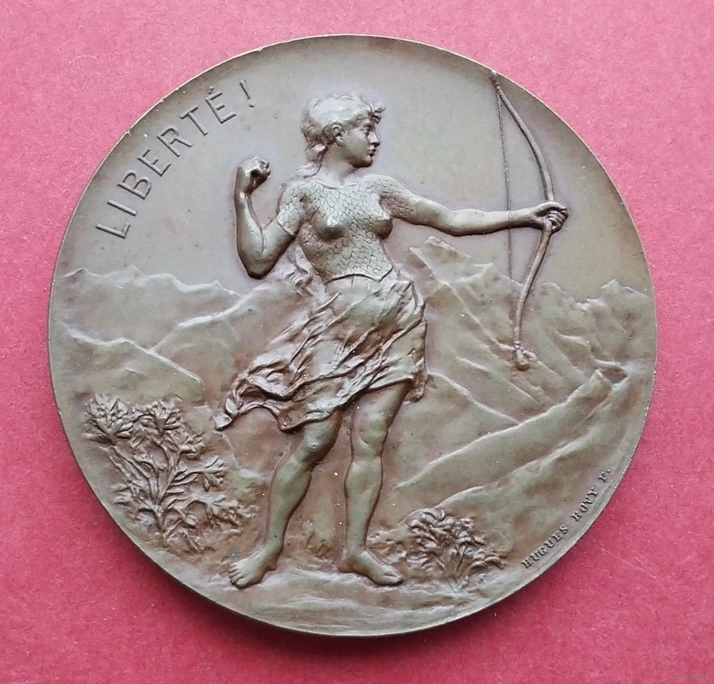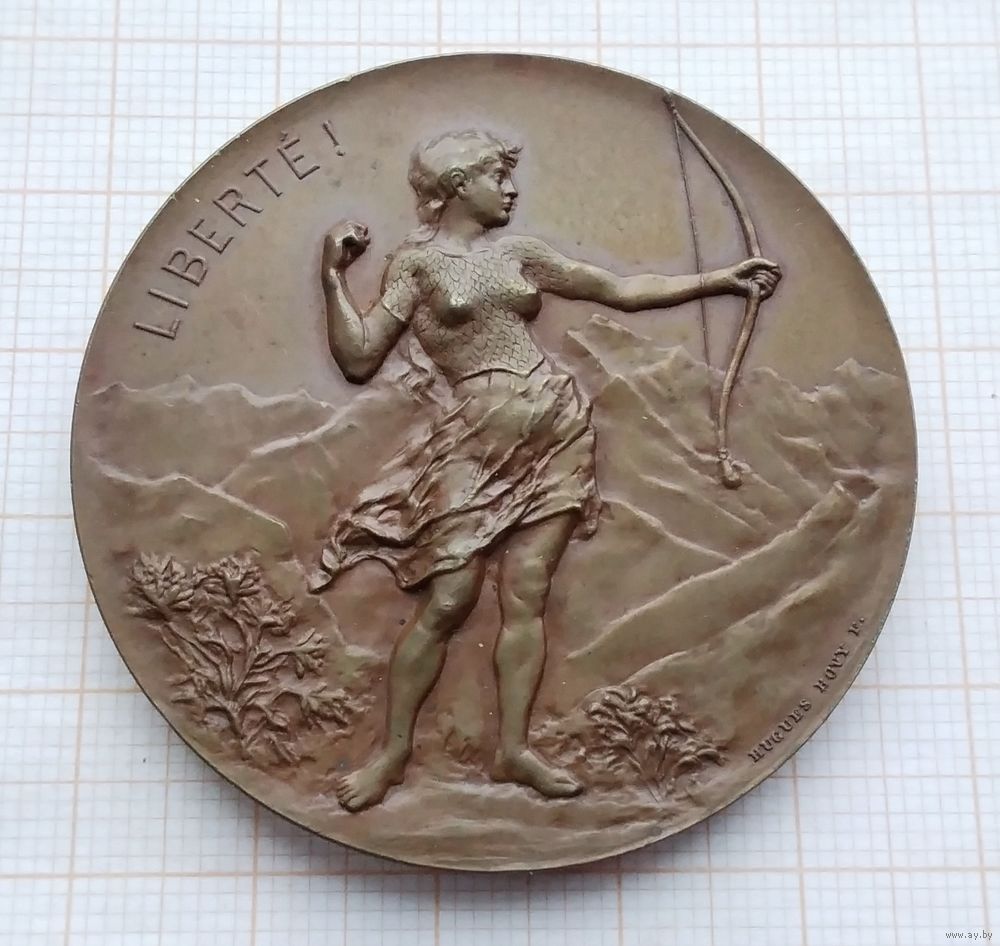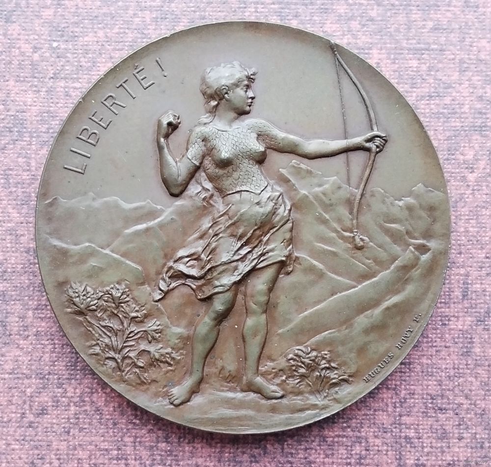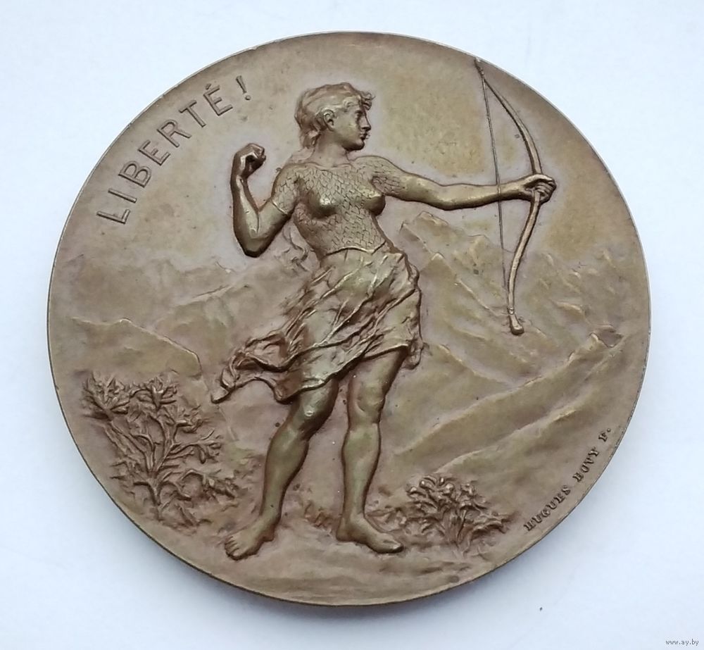 Швейцария. Большой национальный стрелковый фестиваль в Женеве 1896 г. Клеймо на гурте. Медный сплав. Диаметр - 47 мм. Вес - 46 гр. Оригинал.
