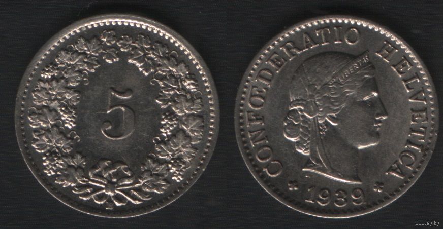 Швейцария km26 5 раппен 1939 год (B) km26b (2
