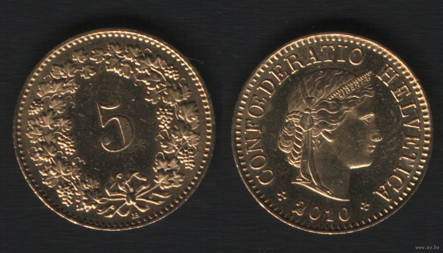 Швейцария km26c 5 раппен 2010 год (B) XF (6873_-ang085