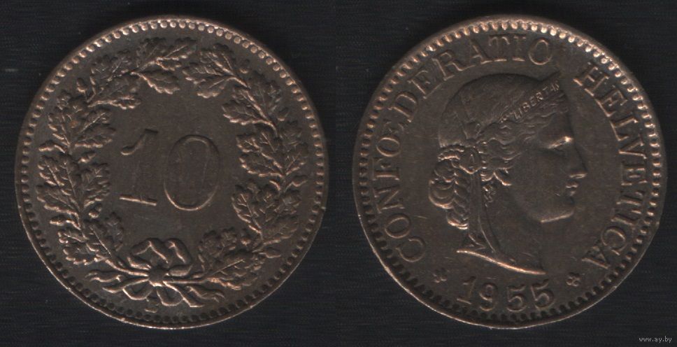 Швейцария km27 10 раппен 1955 год (B) (7