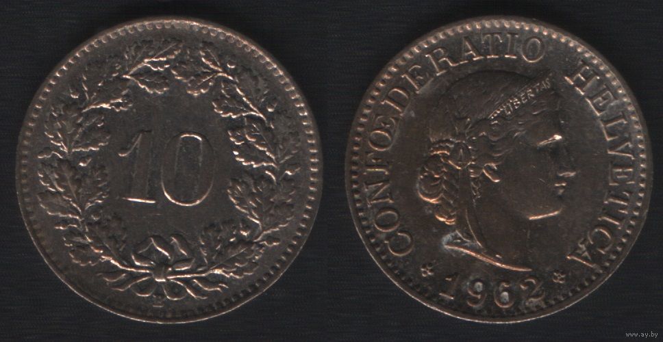 Швейцария km27 10 раппен 1962 год (B) (2