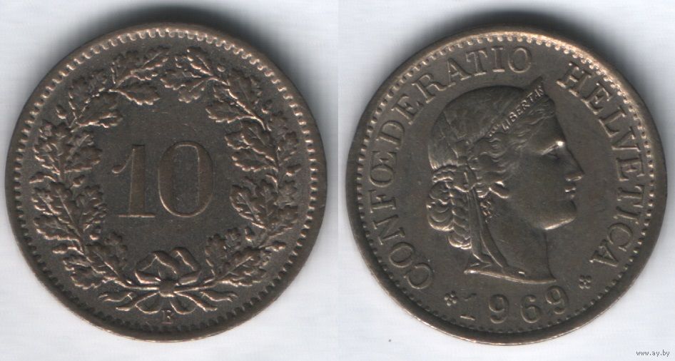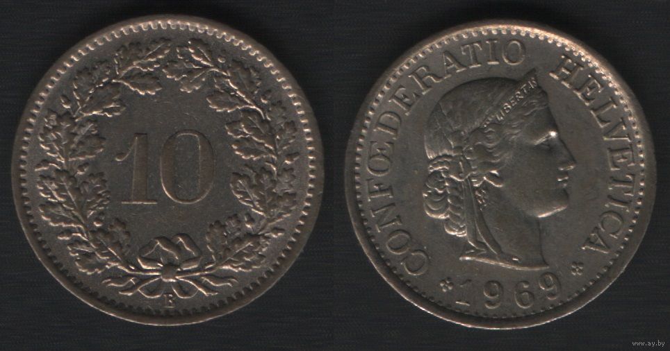 Швейцария km27 10 раппен 1969 год (B) (nf01