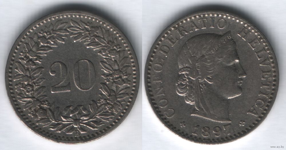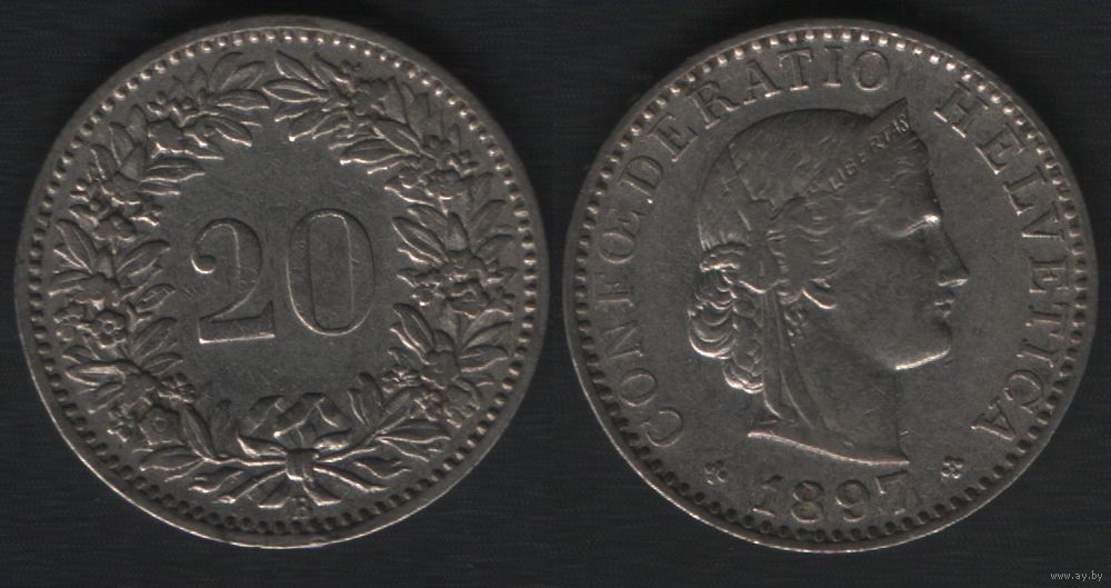Швейцария km29 20 раппен 1897 год (B) (6873