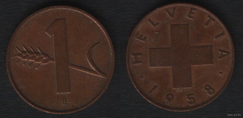 Швейцария km46 1 раппен 1958 год (B) (3