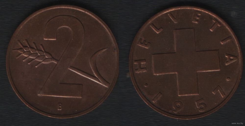 Швейцария km47 2 раппен 1957 год (B) (3