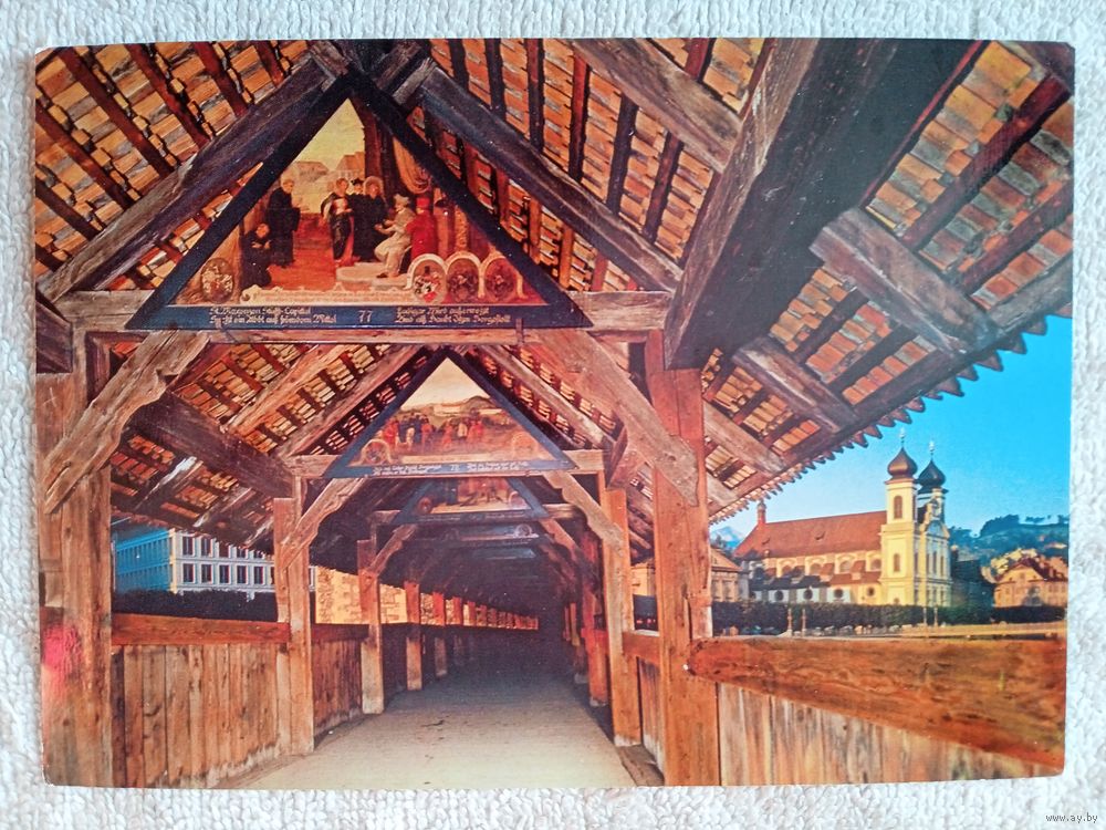 Швейцария, Люцерн. Часовенный мост с церковью иезуитов