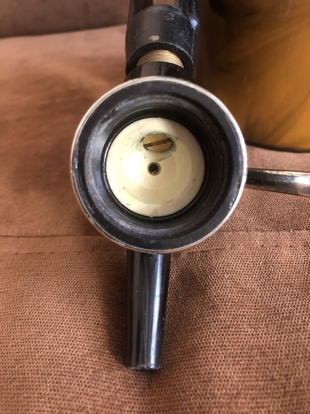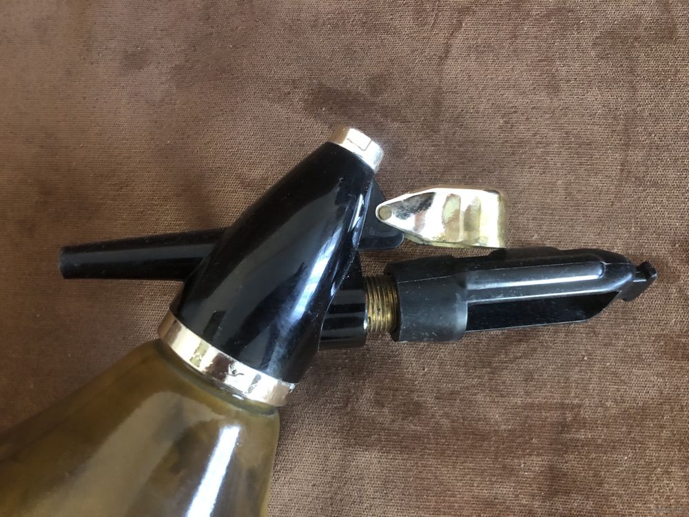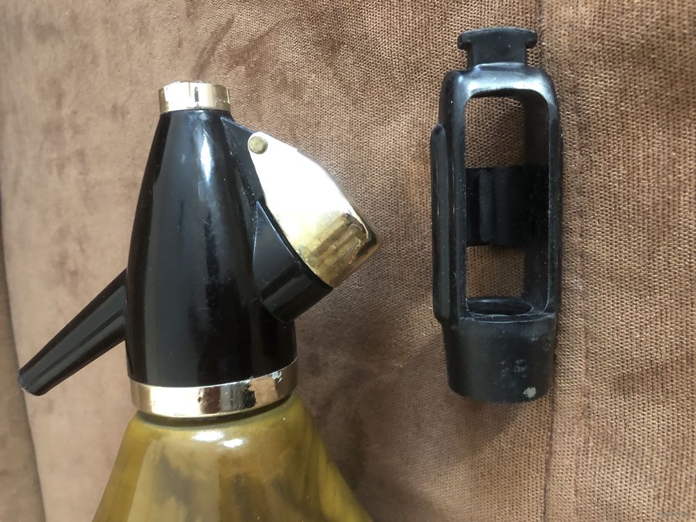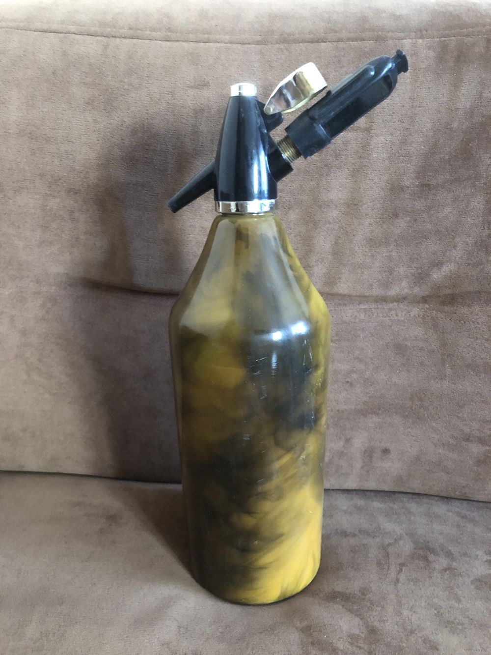 Сифон для газирования воды, высота 40 см., диаметр в основании 11 см., диаметр сифона в «плечиках» 12 см. Произведен в СССР, использовался мало, резинки не затвердели, мягкие и эластичные. Полностью в рабочем состоянии. Объем 1,5 литра