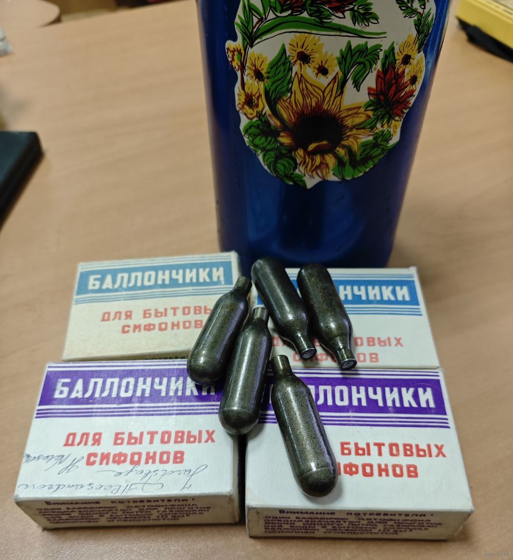 Сифон для газированной воды. С баллонами. СССР. Состояние нового