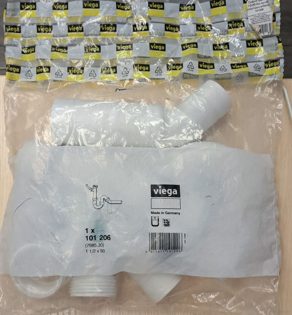 Viega Сифон для мойки 1.1/2″ без выпуска с отводом для слива и трубкой 45° х 50 мм