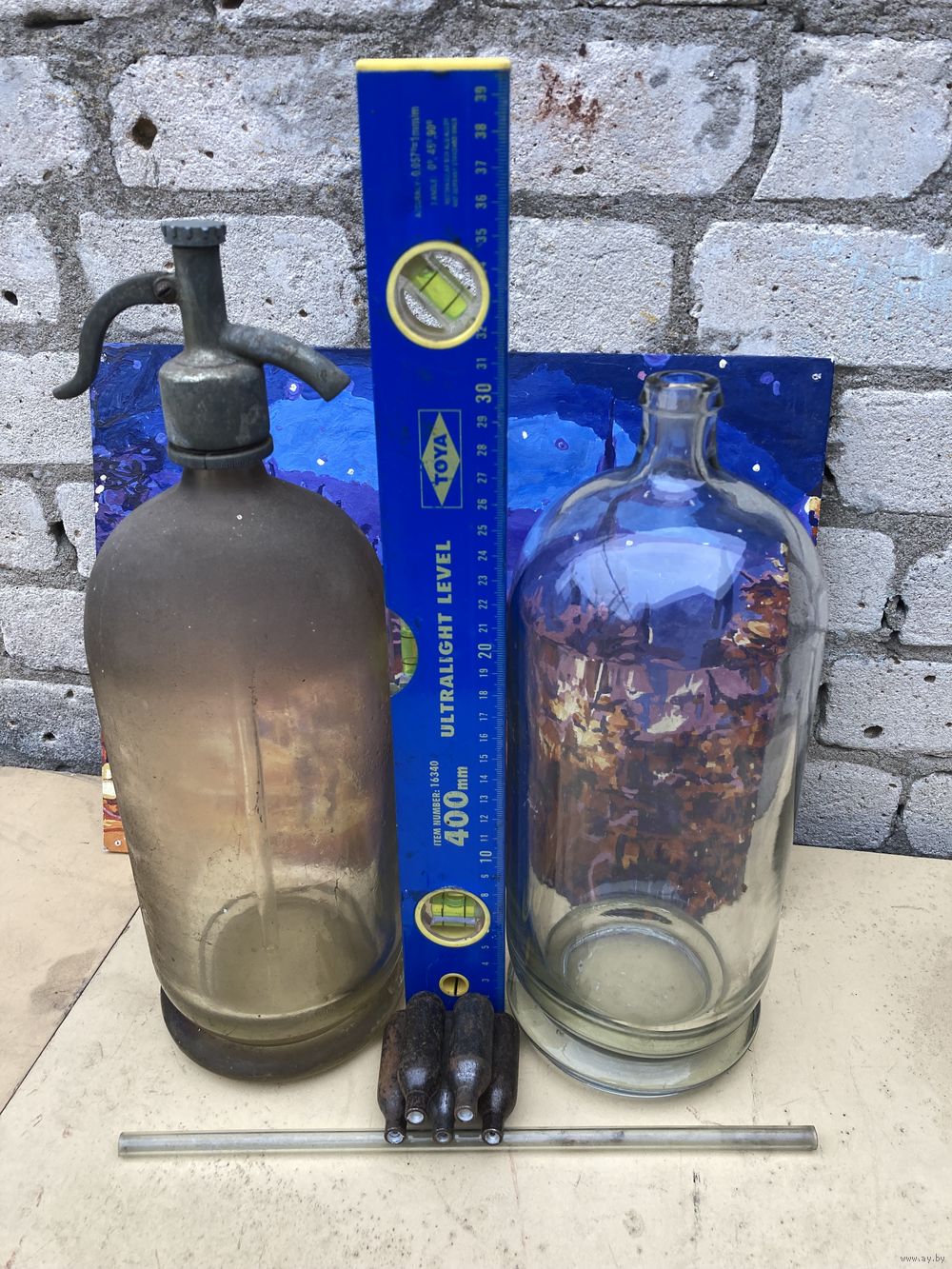 Сифон стеклянный в кухонной патине !+ 1 запасная колба и 5 балончиков 2 из них заправленные