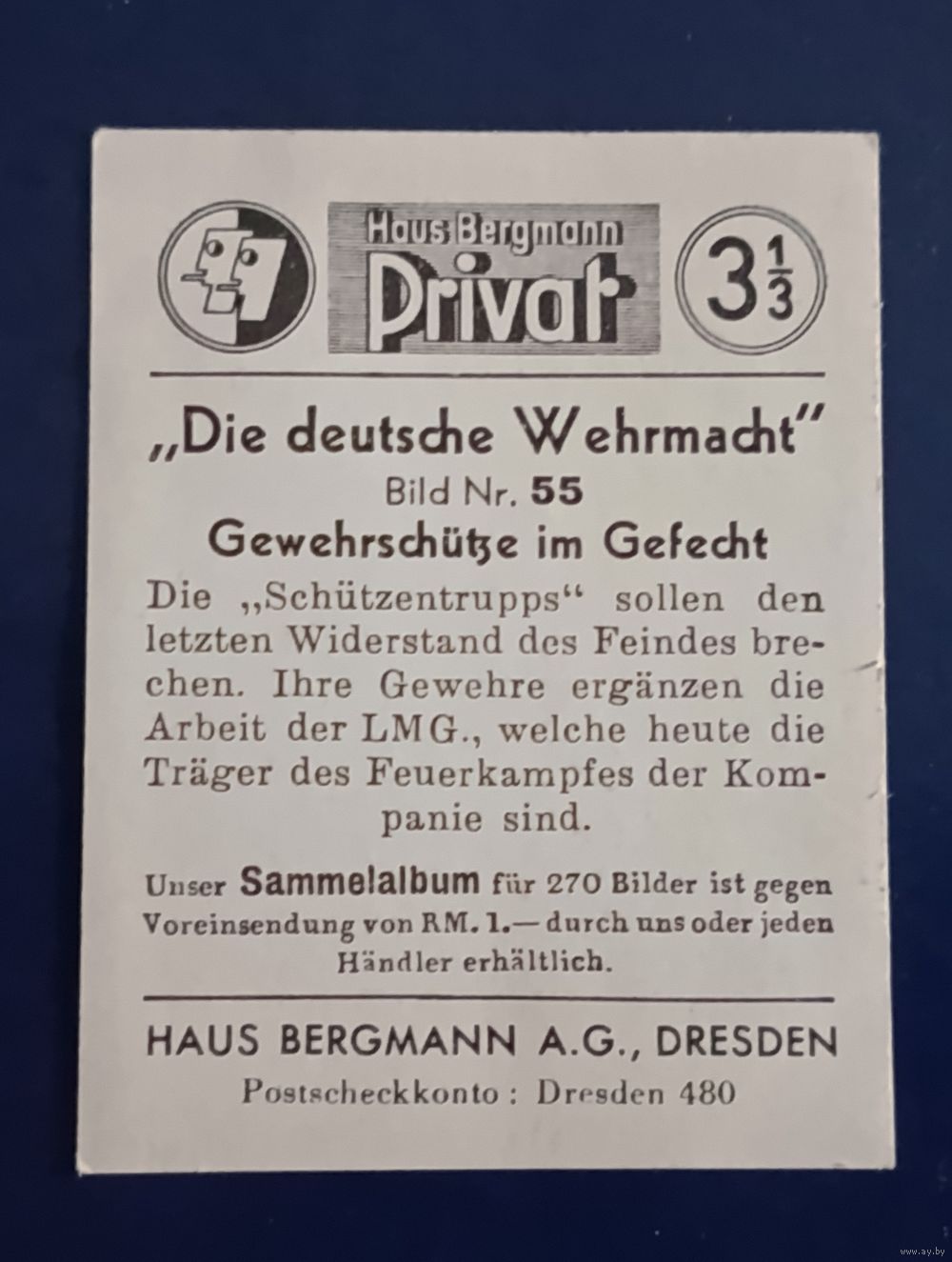 Сигаретный вкладыш. Вермахт. Германия. 1930-40 гг.