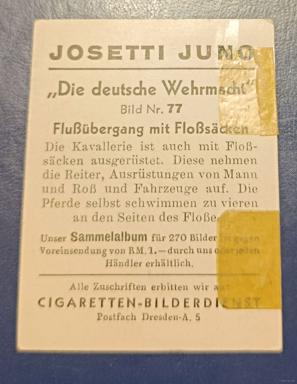 Сигаретный вкладыш. Вермахт. Германия. 1930-40 гг.