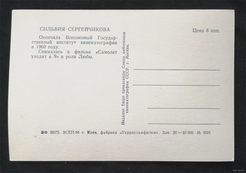 Сильвия Сергейчикова. Актеры театра и кино. Артисты эстрады. Киев 1964 год. Чистая #0119-U1P60
