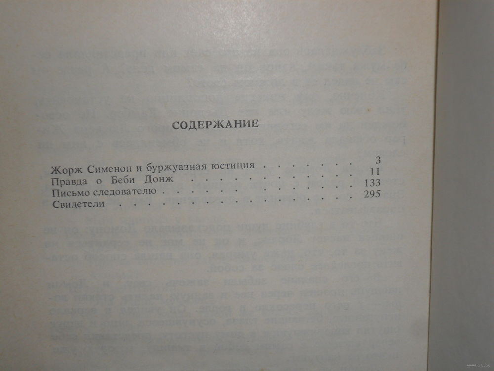 В сборник вошли произведения известного французского писателя Жоржа Сименона, написанные им в разные годы: «Правда о Беби Донж», «Письмо следователю», «Свидетели». Книга посвящена юбилею писателя.