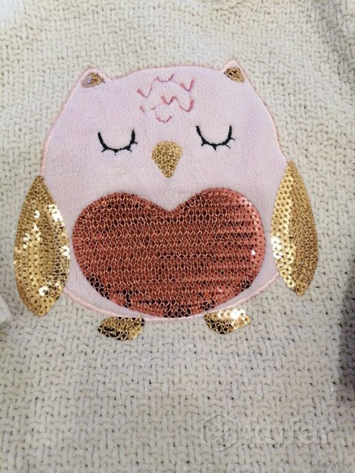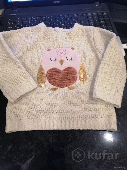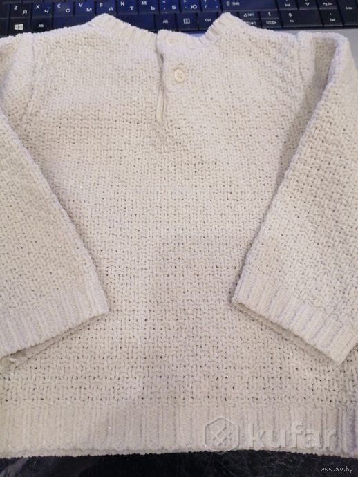 Симпатичная кофточка для девочки до 2-3-х лет, состояние отличное, дефектов нет. Цвет молочный, спереди красивая аппликация. Длина изделия 33см, ПОГ 28см, длина рукава 28см.