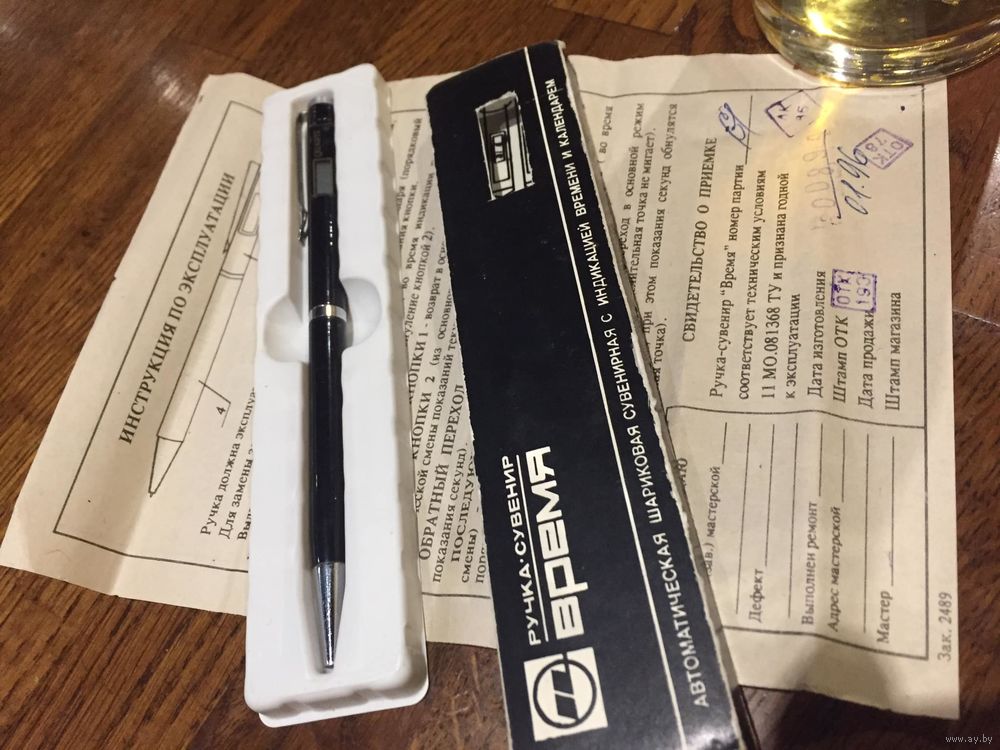 1. Чёрная ручка с часами, произведена в январе 1996 года на оборонном предприятии (более подробно - см. в описании похожей ручки https://ay.by/lot/ruchka-sharikovaya-s-chasami-bordovogo-cveta-5039958965.html)