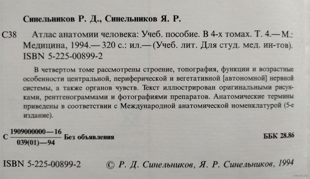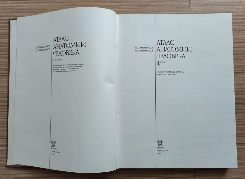 Синельников Р.Д., Синельников Я.Р. Атлас анатомии человека. В четырёх томах. Том 4. Учение о нервной системе и органах чувств. Москва, Медицина, 1994г. 320с., твёрдый переплёт, очень большой формат.