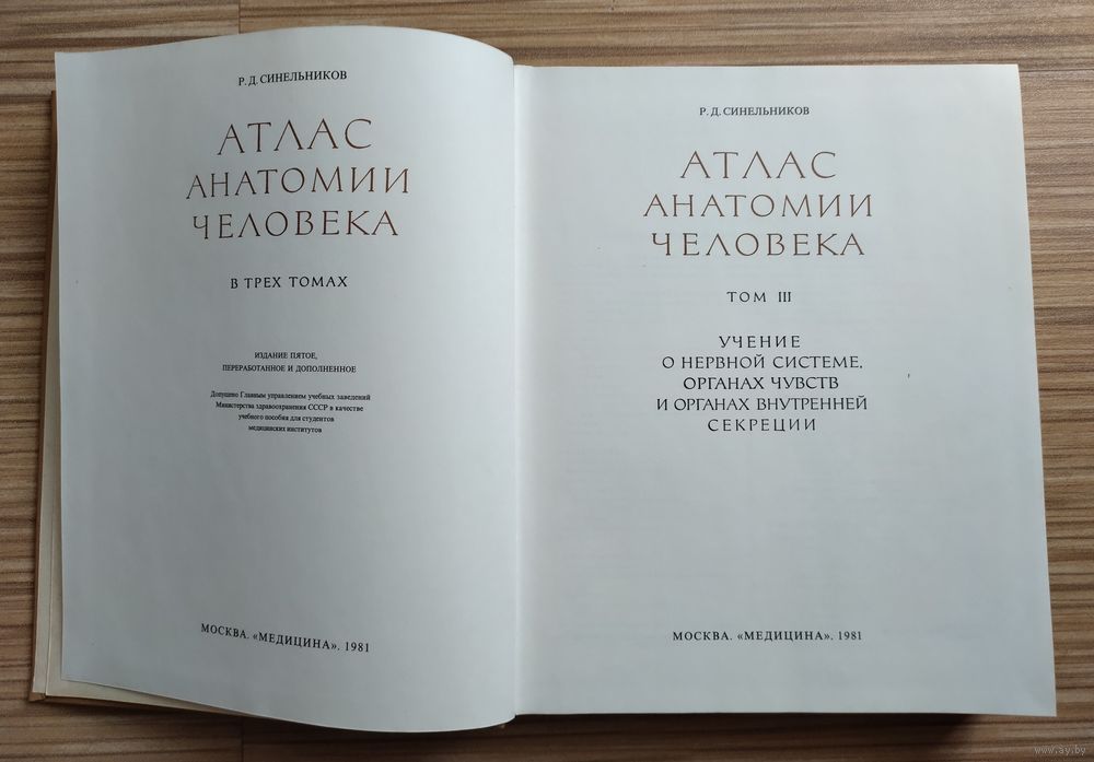 Синельников Р.Д. Атлас анатомии человека. В трёх томах. Том 3. Издание 5-е, переработанное и дополненное. Москва, издательство "Медицина", 1981г. 400 стр., илл. Твёрдый переплёт, энциклопедический формат.