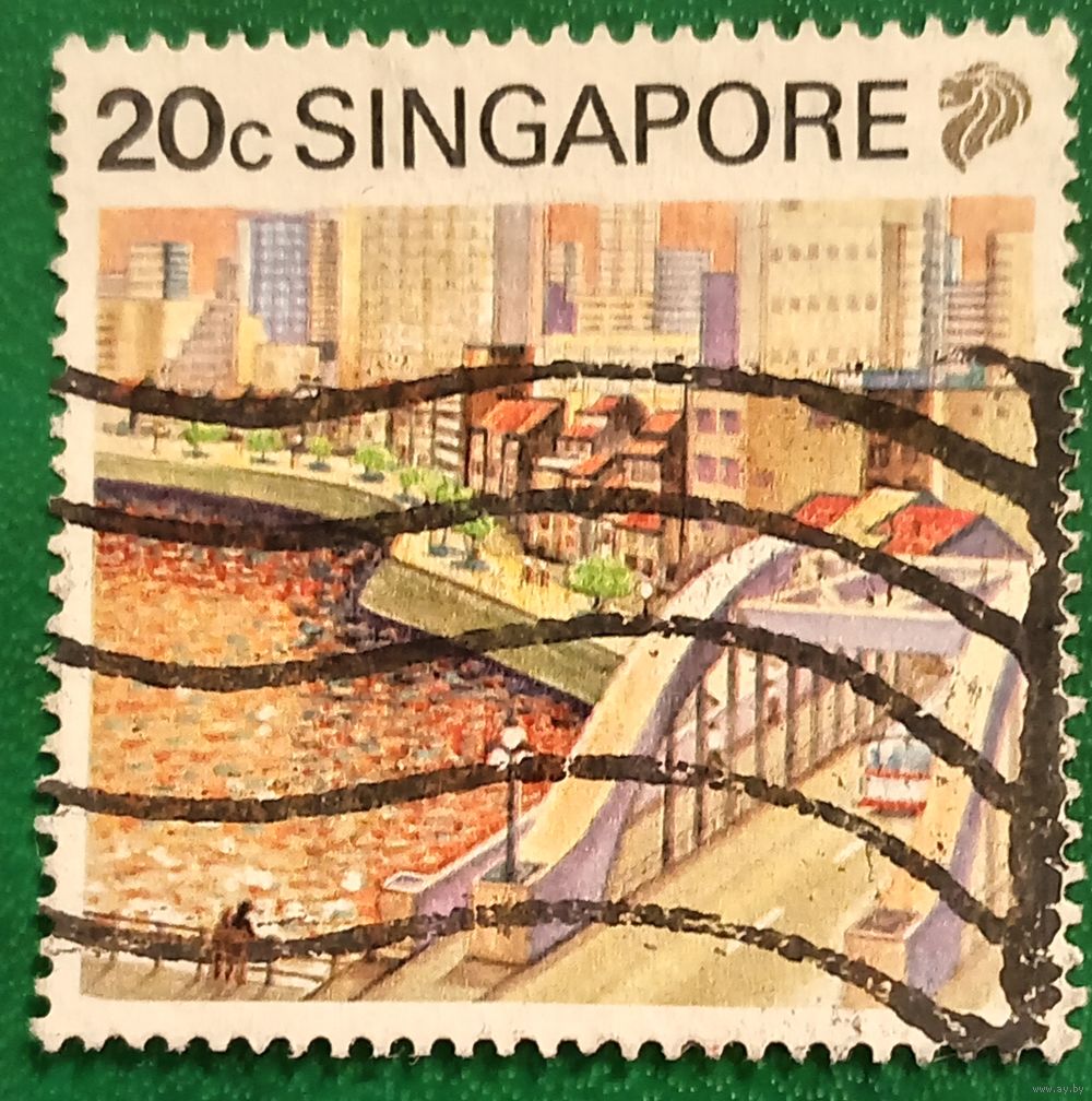 Сингапур 1990. Городской пейзаж с видом на реку Сингапур и мост Элгин