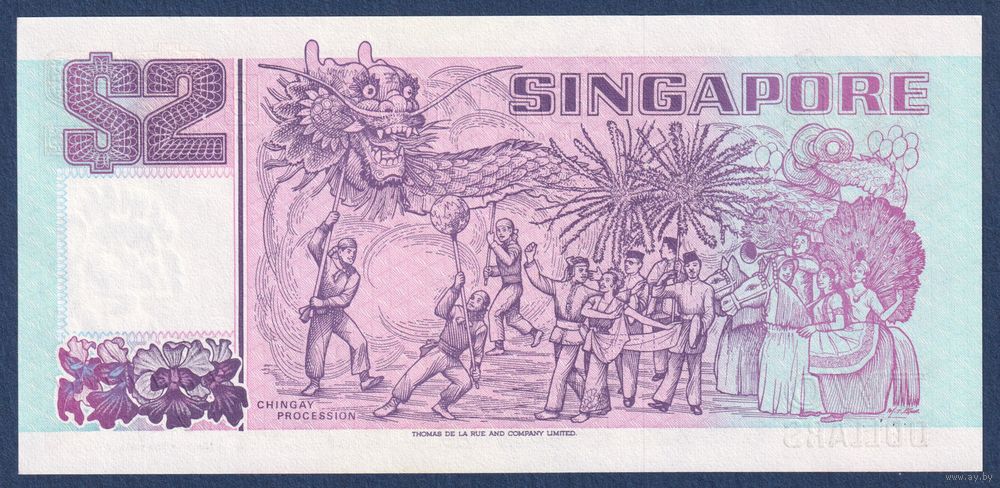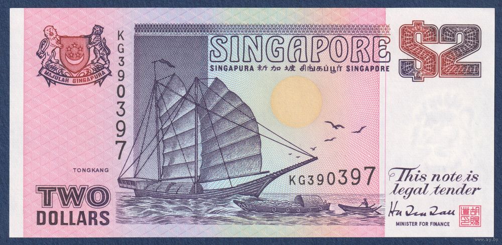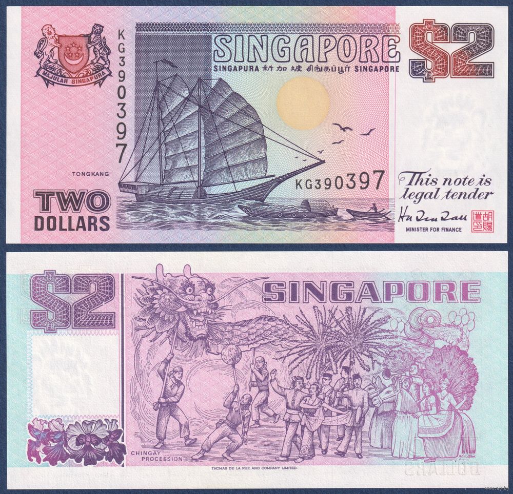 Сингапур, 2 доллара 1997 г, P-28 (KG, джонка, карнавал Чингай), UNC