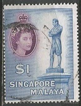 Сингапур. Королева Елизавета II. Памятник Р.Стемфорду. Основатель Сингапура. 1955г. Mi#40.
