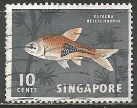 Сингапур. Рыбы. Росбара клинопятнистая. 1962г. Mi#59.