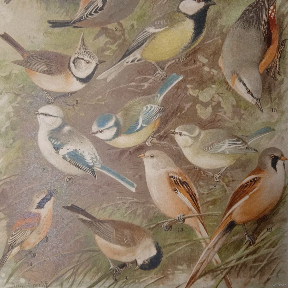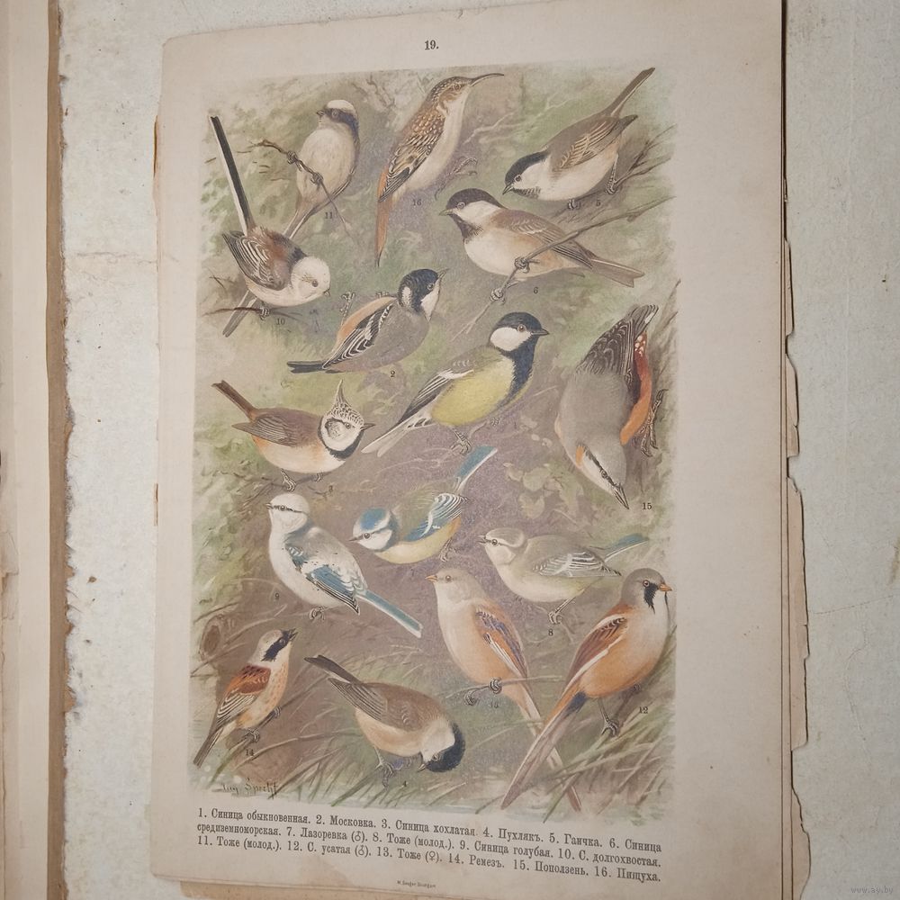 Синица... Ремезъ. Поползень... Литография СПБ. Энциклопедическая гравюра конец 19века 29х21см.