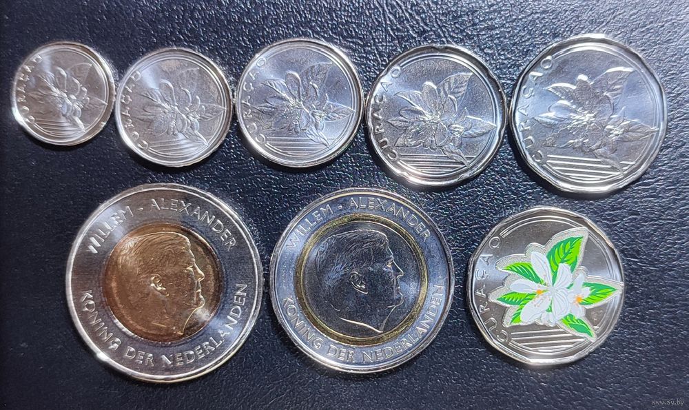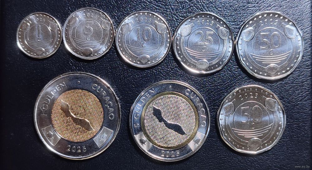 Синт-Мартен (8 монет) весь комплект 1, 5, 10, 25, 50 центов, 1, 5 гульденов + юбилейные 50 центов 2025 г..