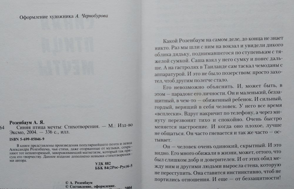 Большой формат. Тираж 6000 экз. 336 стр. Стихотворения: Из-под пальцев улетел аккорд. В книге представлены произведения поэта и певца, чьи стихи, даже оторванные от музыки, сохраняют тот неповторимый, завораживающий магнетизм, который так присущ его творчеству. Данное издание дополнено новыми стихотворениями автора.