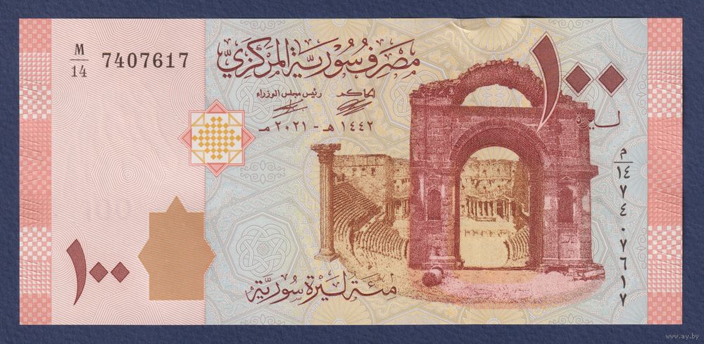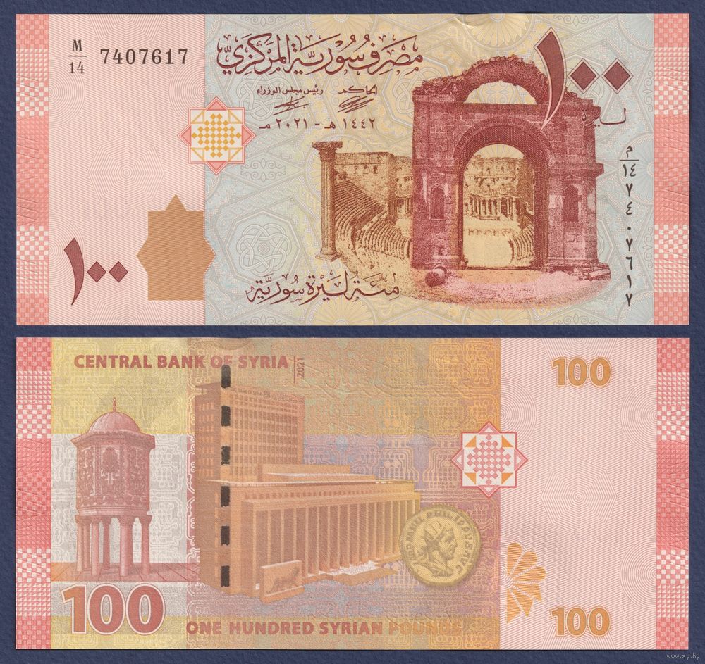 Сирия, 100 фунтов 2021 г, P-113 (M, каменные ворота и амфитеатр Босры), UNC