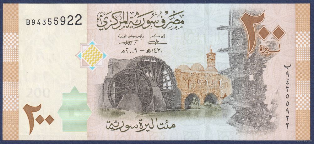 Сирия, 200 фунтов 2009 г, P-114 (B, водяное колесо в Хаме), UNC